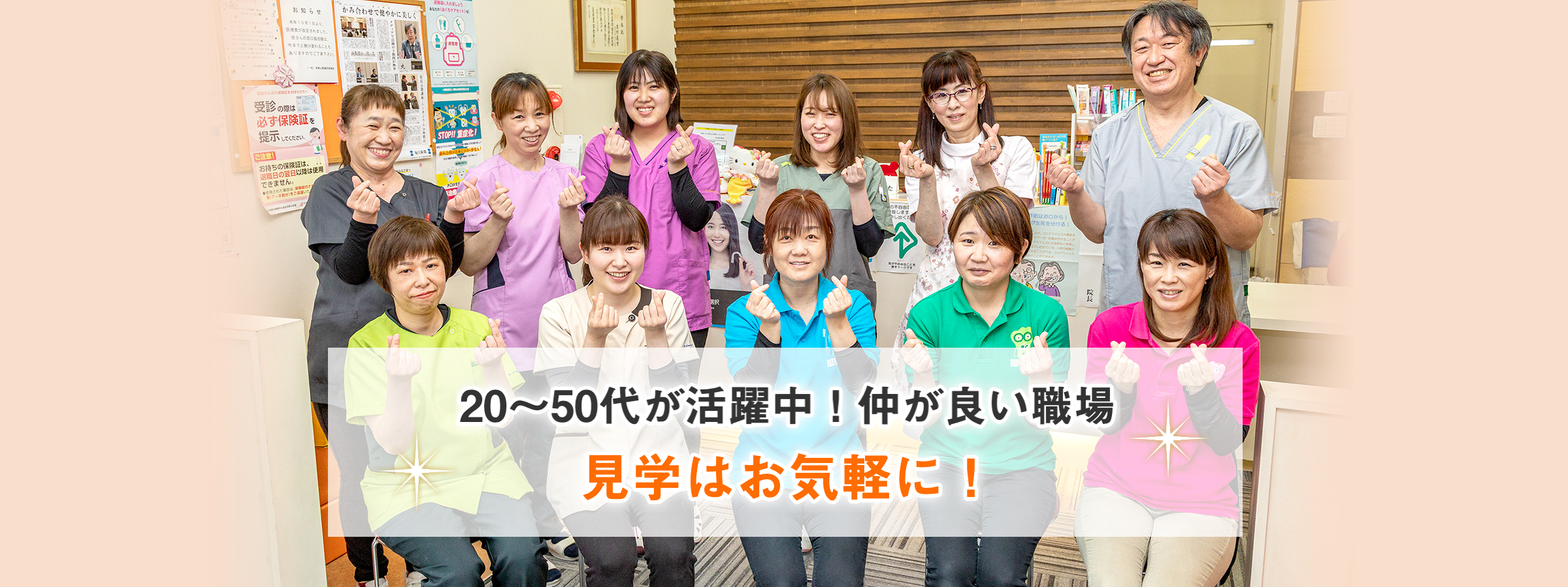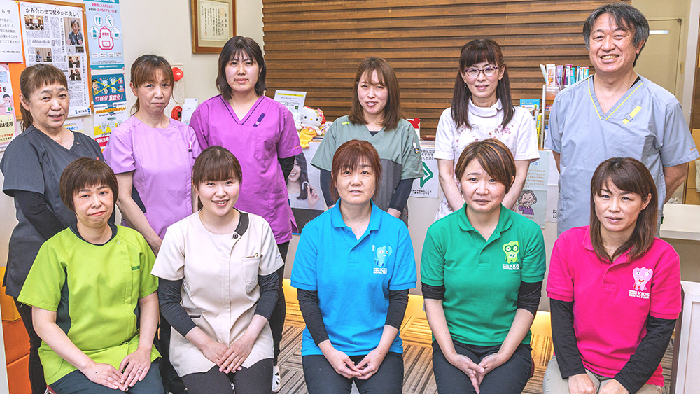 スタッフの年齢層は20~50代と幅広いものの、年齢を気にせず和気あいあいと働いているのが自慢です。スムーズな診療のためにも、日頃から活発にコミュニケーションを図っています。