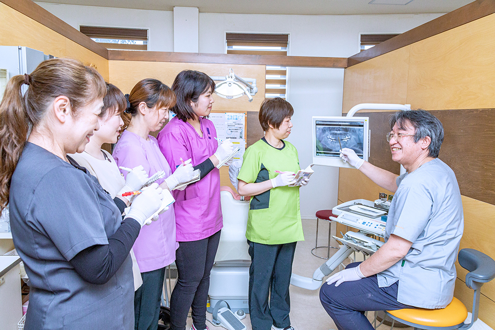 勉強会は、スタッフが自分の勉強したい内容に関する課題を出し合い、順番で講師を務め、最後に院長が補足するという流れです。なお、勉強会の資料作成を行うのも診療時間内です。