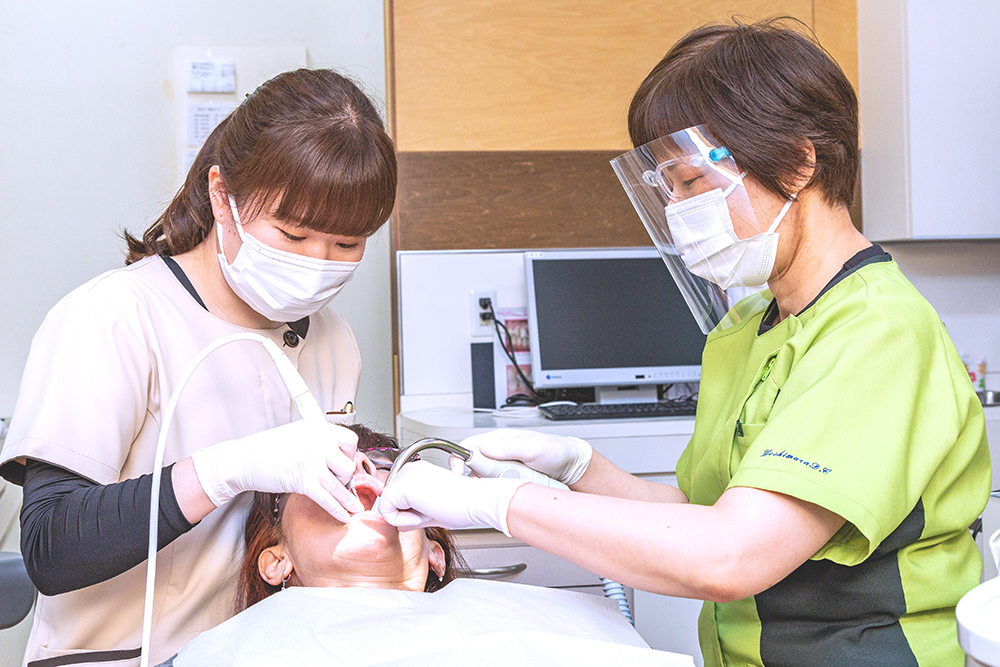 歯科医師や歯科衛生士、歯科助手、受付が一丸となり、自らの仕事に責任を持ちながら診療しています。